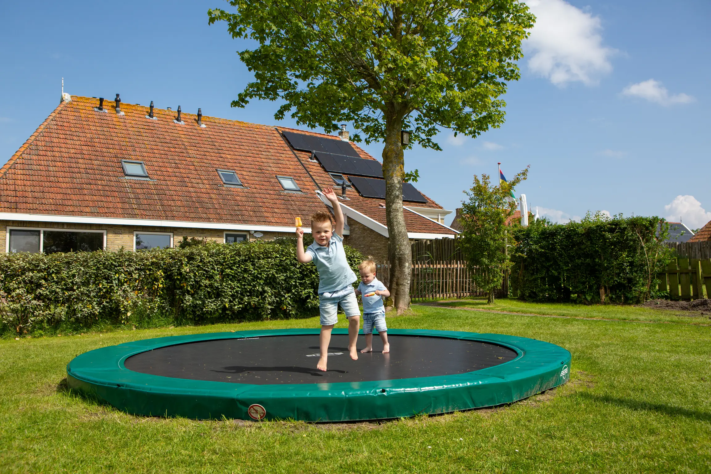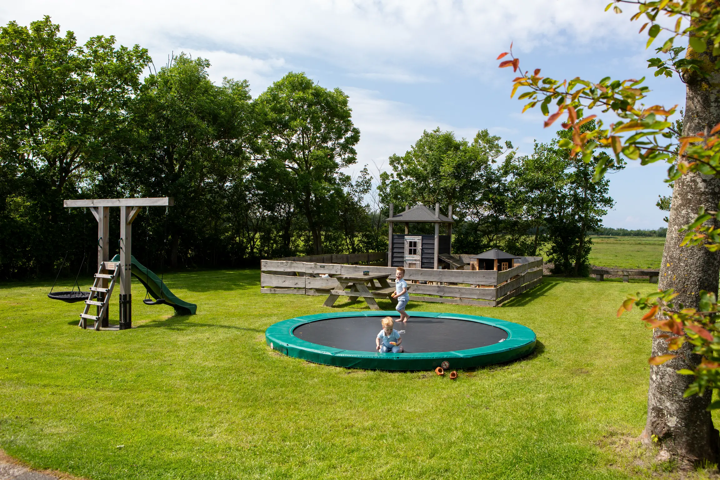 Je kunt tot `s avonds laat van het zonnetje genieten op het terras. De grotere kinderen kunnen zich uitleven op de trampoline op het veldje ernaast.